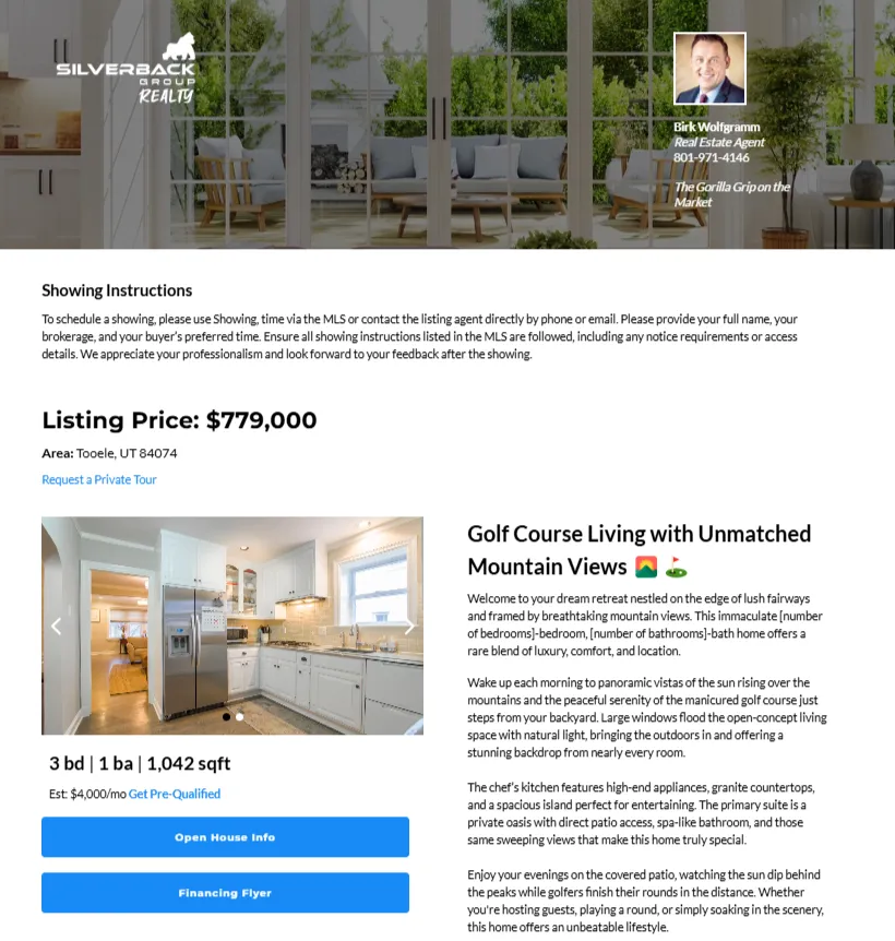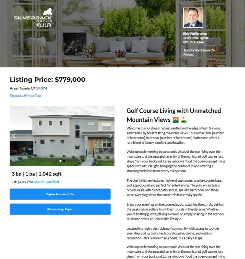 Each listing gets its own custom landing page designed to capture attention and drive interest. These pages feature high-quality photos, property details, virtual tours, and lead capture forms—providing a focused, distraction-free space for potential buyers to explore and take the next step.
