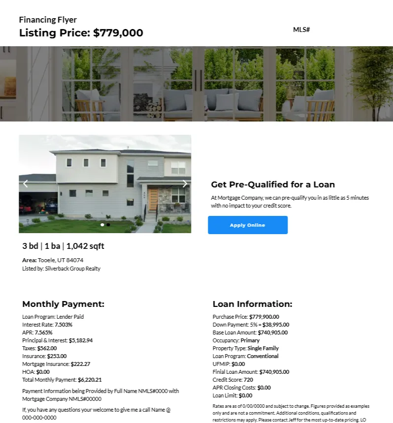 The Financing Flyer Page is designed to help potential buyers better understand their financing options for the property. It includes relevant mortgage information, estimated monthly payments, and special financing programs available, making it easier for buyers to visualize how they can afford the home. This tool supports real estate agents in guiding buyers through the financial aspect of their purchase, helping to streamline the decision-making process and reduce obstacles related to financing.